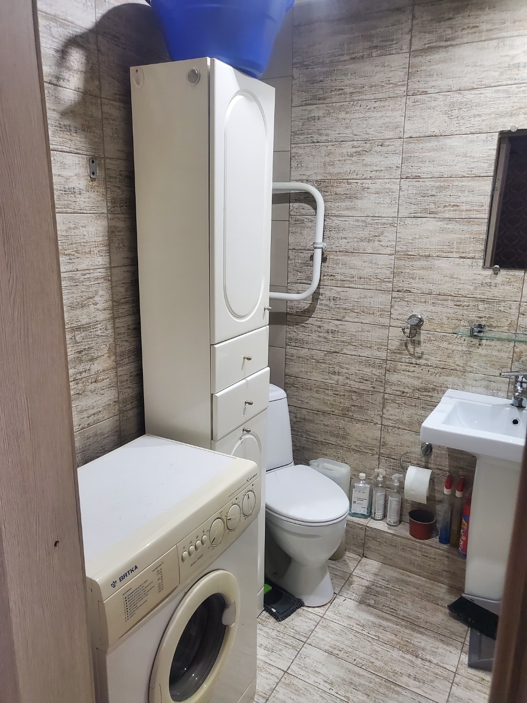 В санузле: стиральная машина автомат, шкафчик
