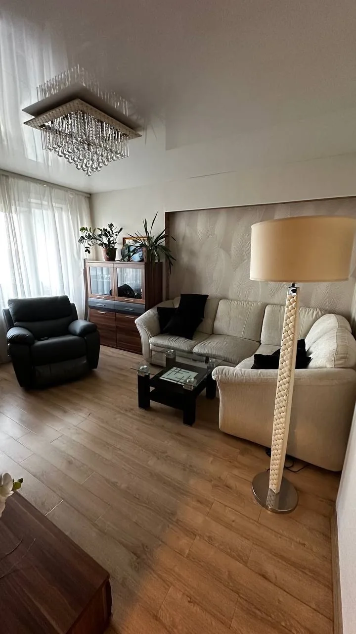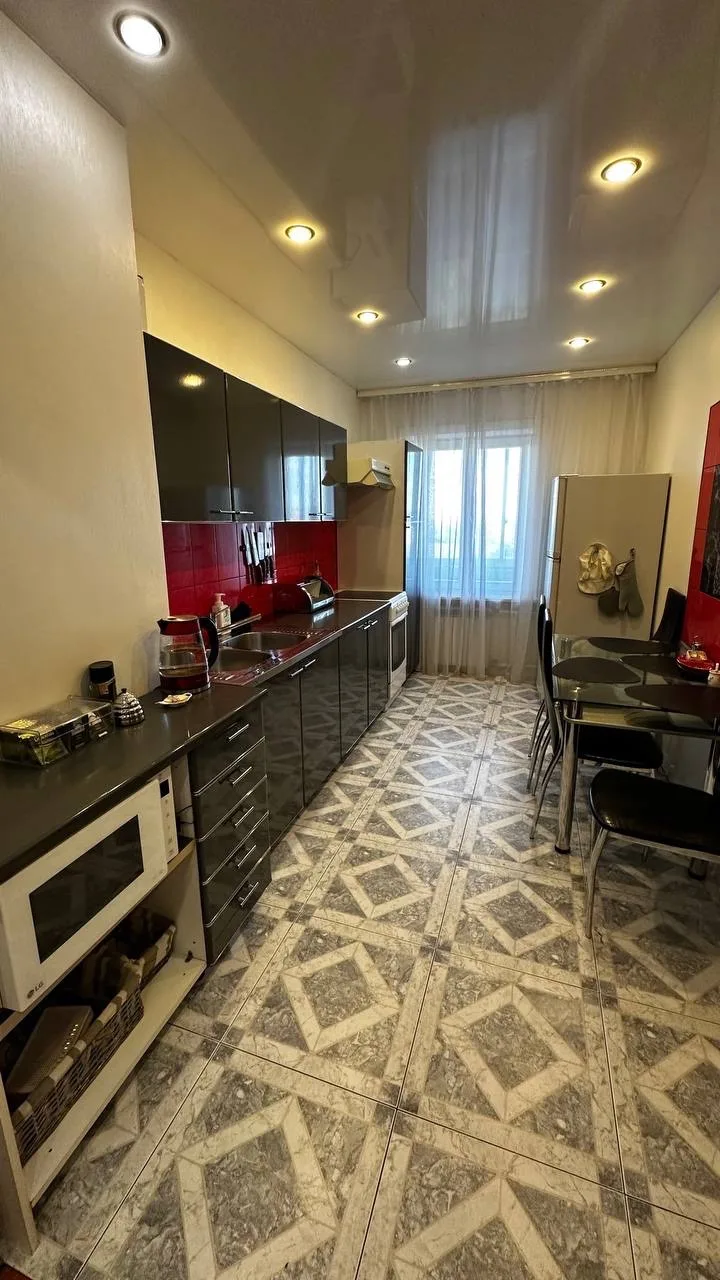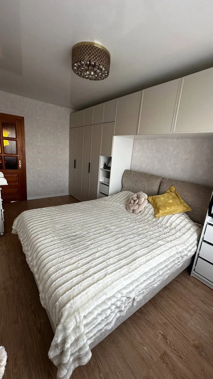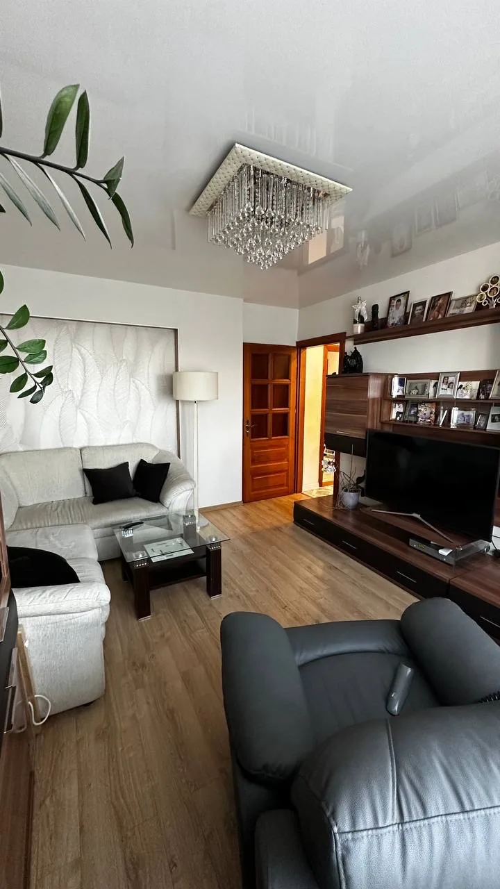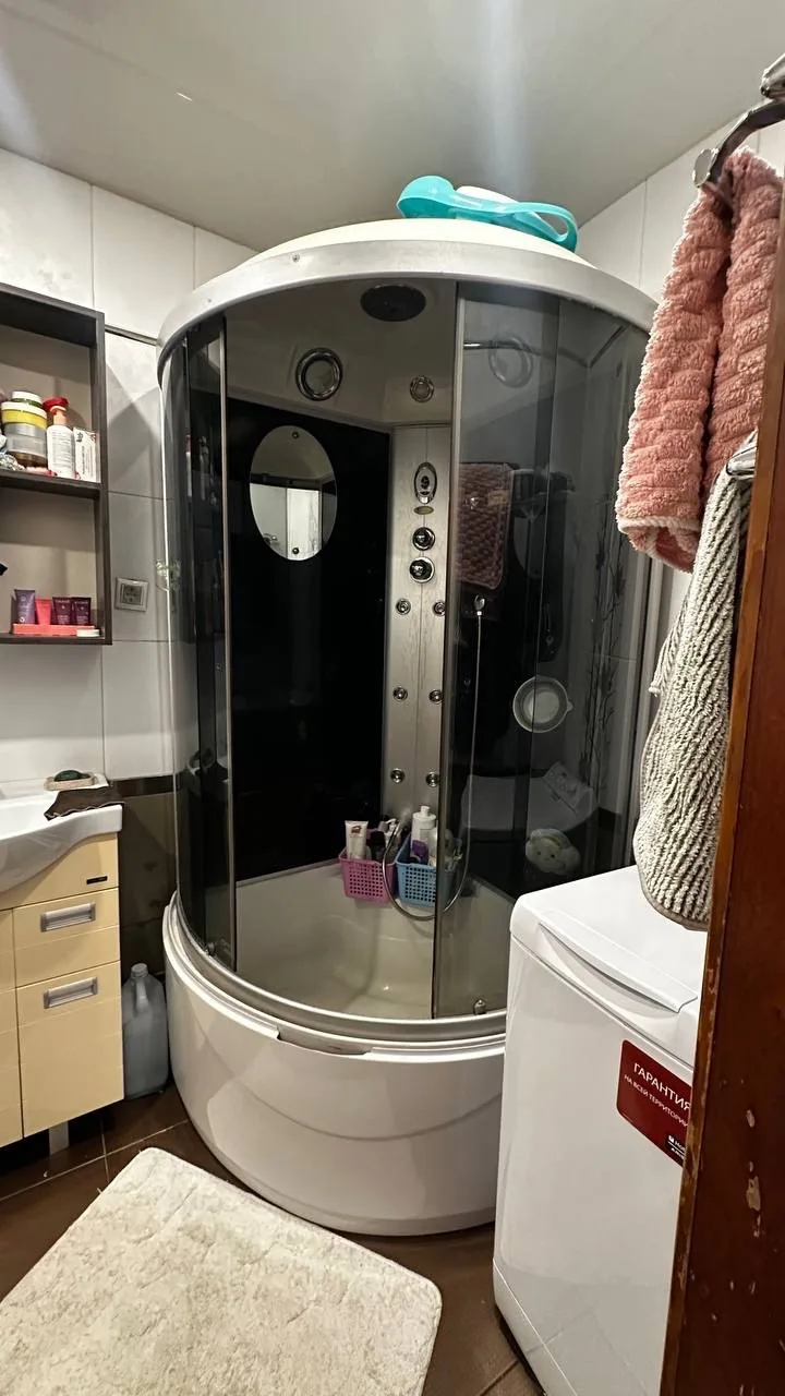 Спальня, детская комната, гостиная и большая кухня, сан узел совмещен (душевая кабина)