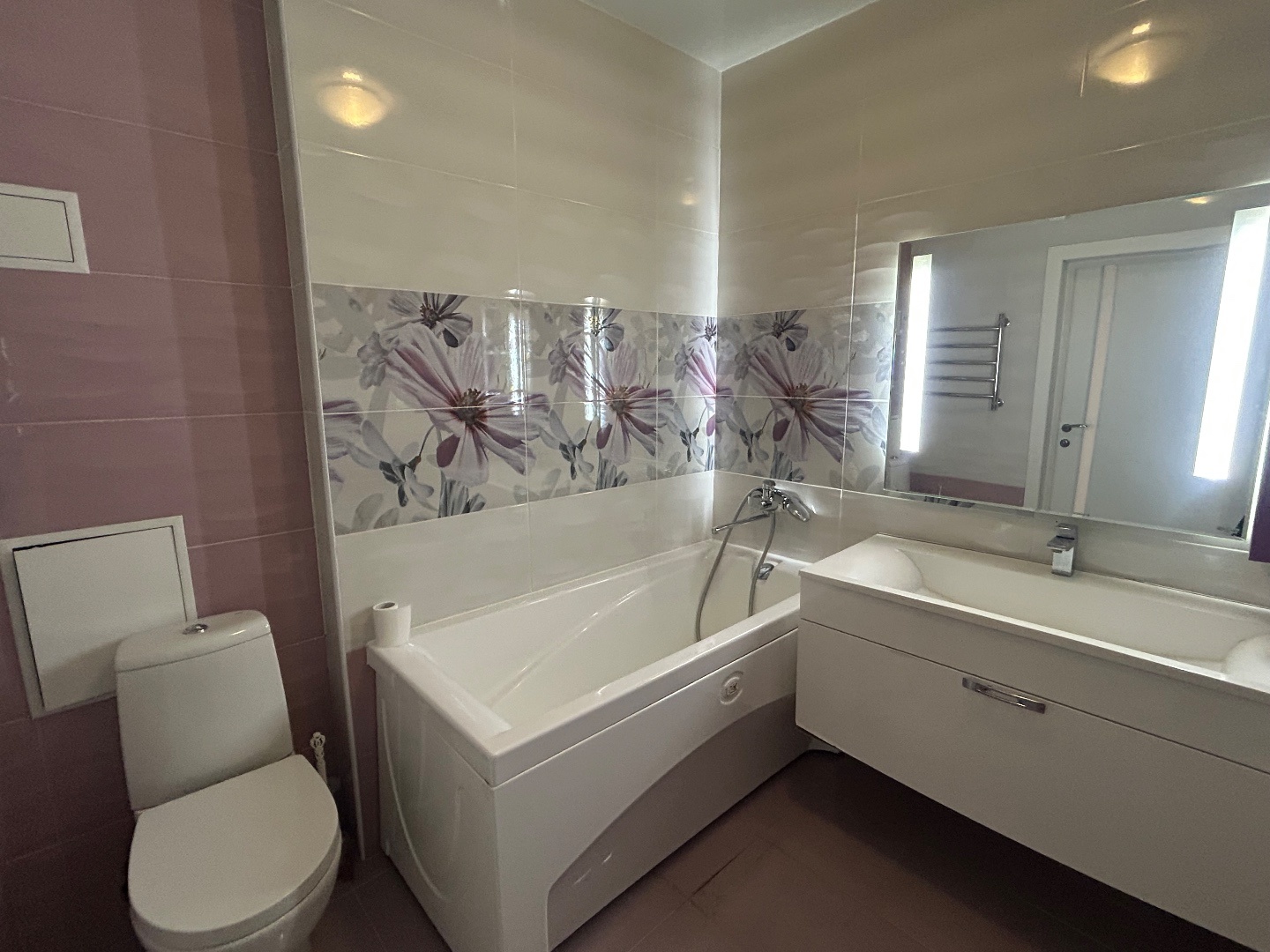 - Санузел площадью 5,6 кв. м — оборудован качественной сантехникой и гармонично вписывается в общий стиль квартиры.